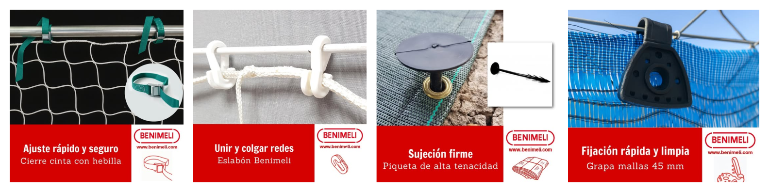 En Benimeli no solo fabricamos redes: queremos que la instalación funcione como debe. Por eso damos tanta importancia a los accesorios: porque es ahí donde se decide la continuidad, la estabilidad, la vida útil y, en muchos casos, la seguridad.
