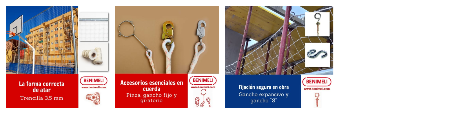 En Benimeli reforzamos la seguridad y la durabilidad de las instalaciones con una gama completa de accesorios para redes y cuerdas